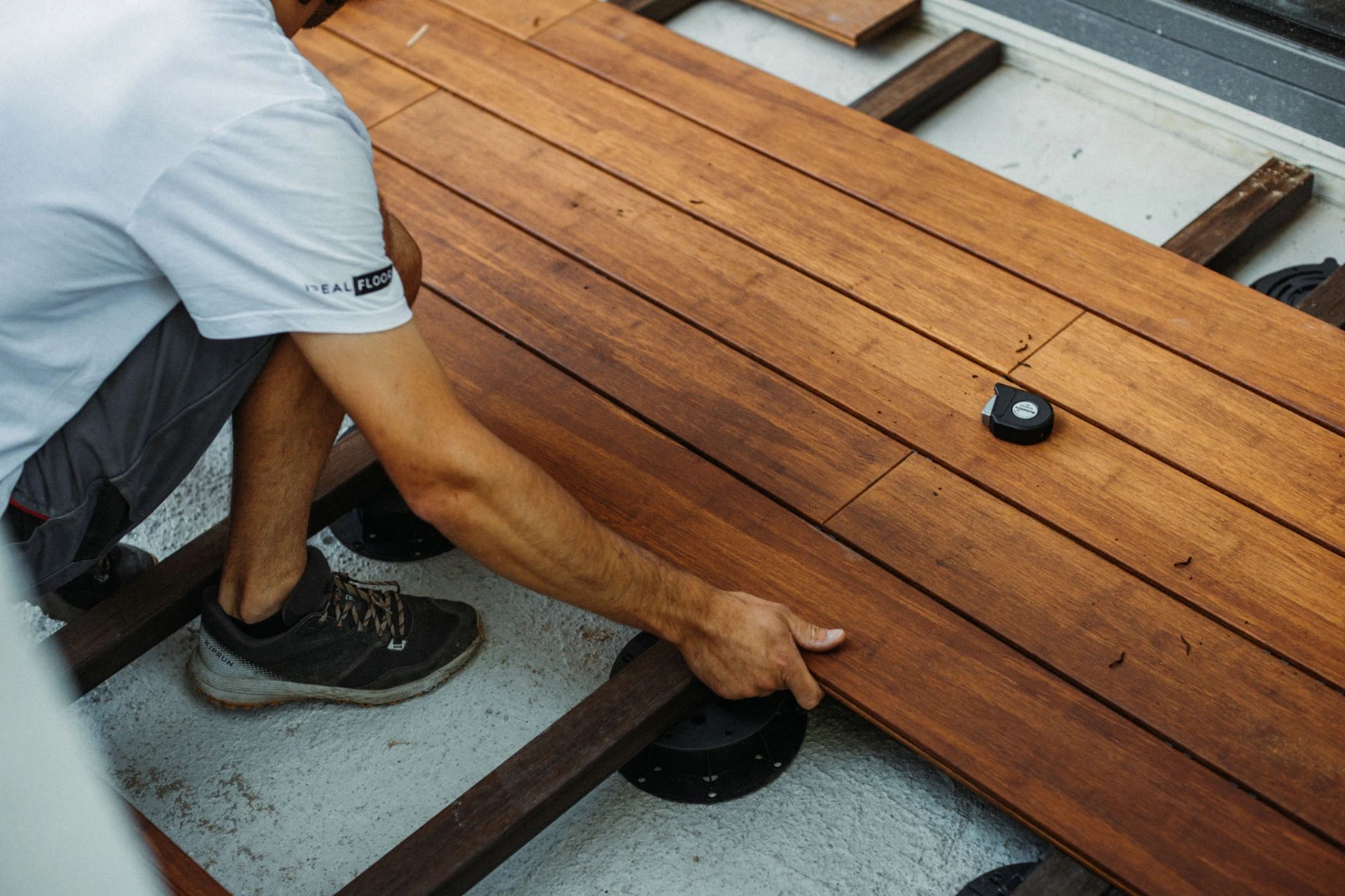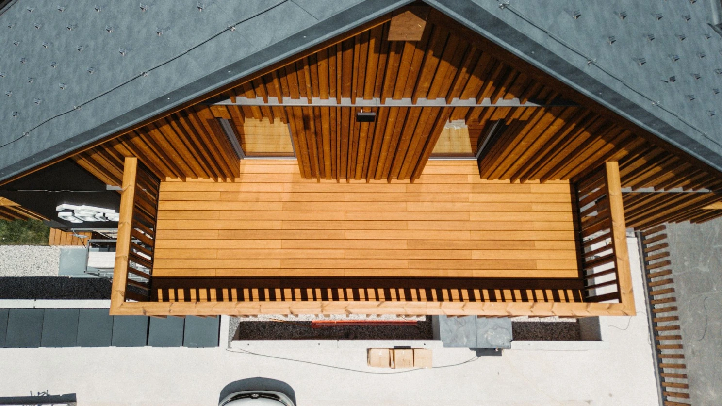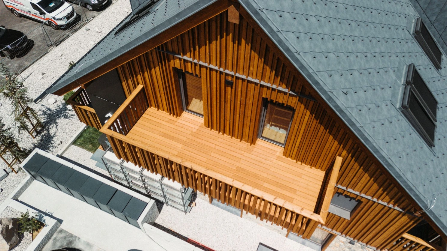 Naročnik je izbral MOSO Bamboo N-durance, industrijsko oljen material, primeren za zahtevne vremenske razmere v alpskem okolju.